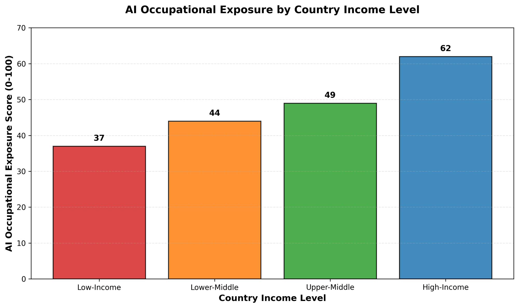 Lower exposure means these countries have fewer opportunities to benefit from AI. Their institutional structures, their digital infrastructure, their human capital — all of these are not ready. The World Bank data in 2025 shows this clearly when we look at AI occupational exposure scores: