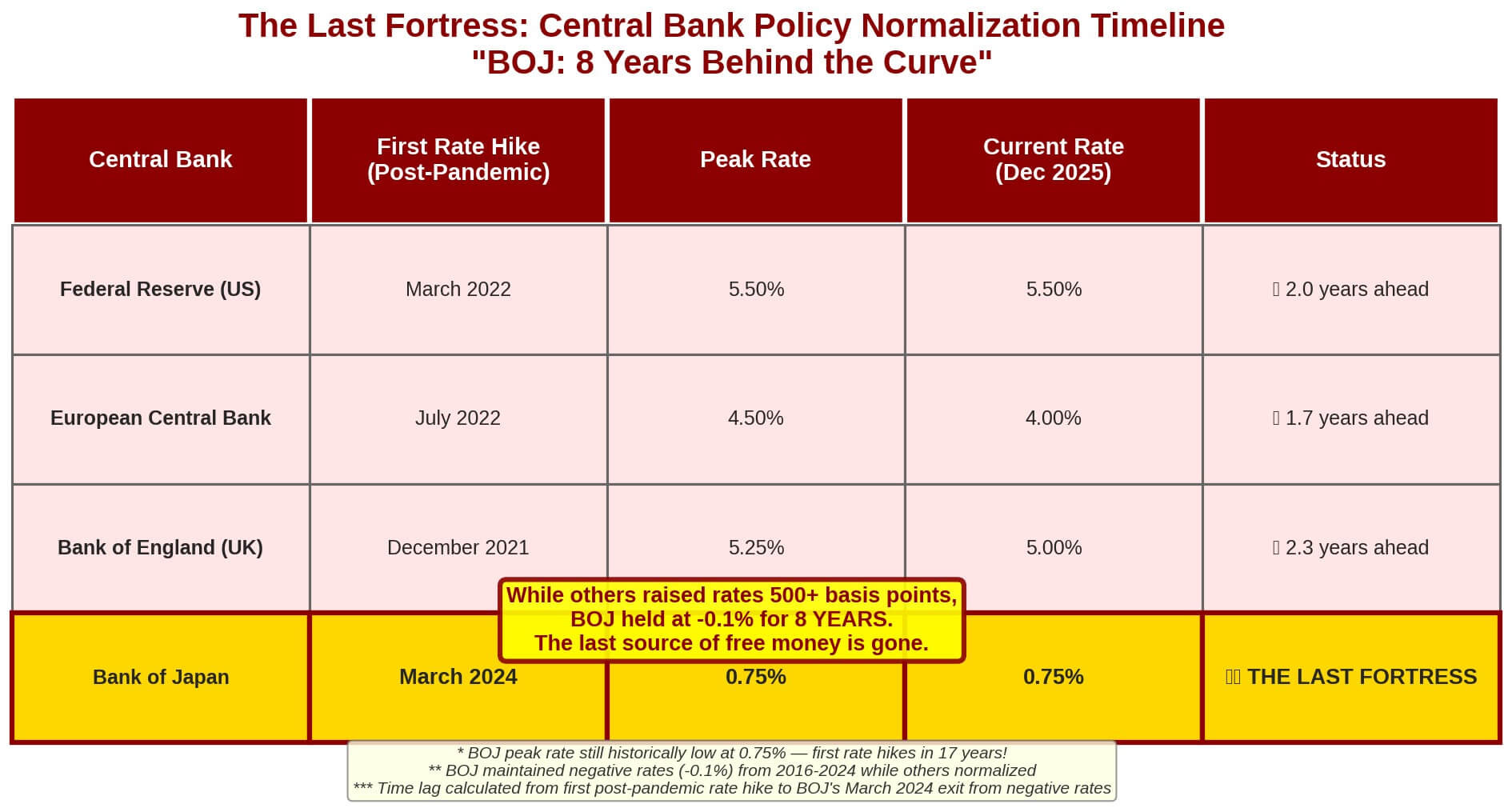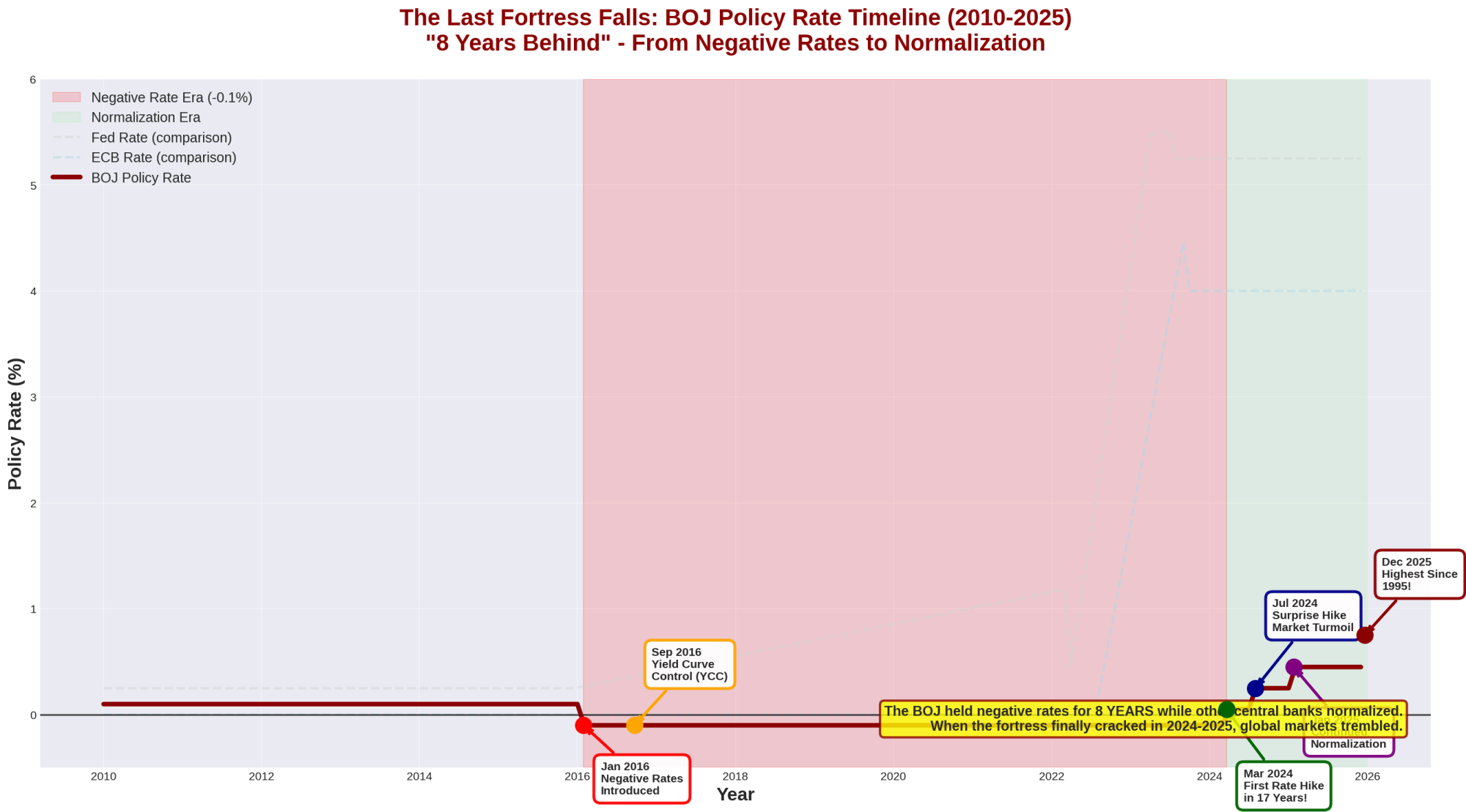 The BOJ has now hiked rates to 0.75% as of December 2025. The fortress is not just cracking. It is crumbling.