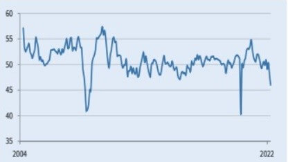 The PMI index in China fell below 50 as of the first quarter of 2022.