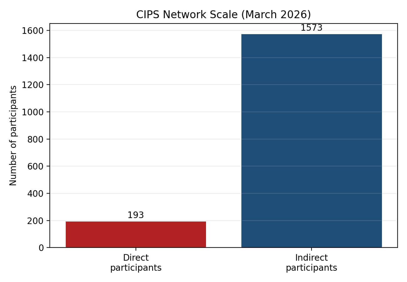 Figure 3. CIPS network scale in March 2026. Size matters because payment networks create strategic resilience.