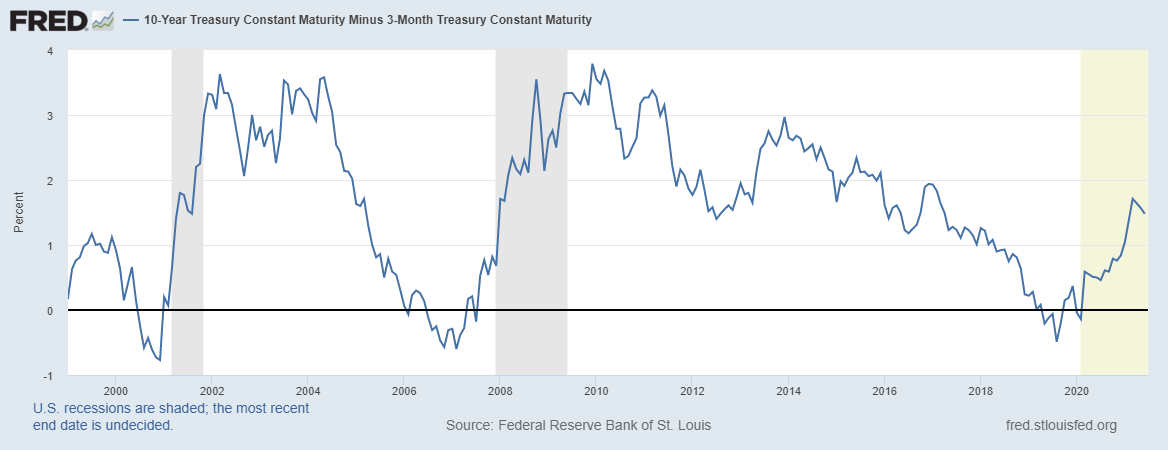 When we look at the graph, we can clearly see this. Before the 2001 and 2008 crisis, the yield curve inverted. Finally, we see it reversed in March 2019. Even at the beginning of 2020, the yield curve seems to have reversed.